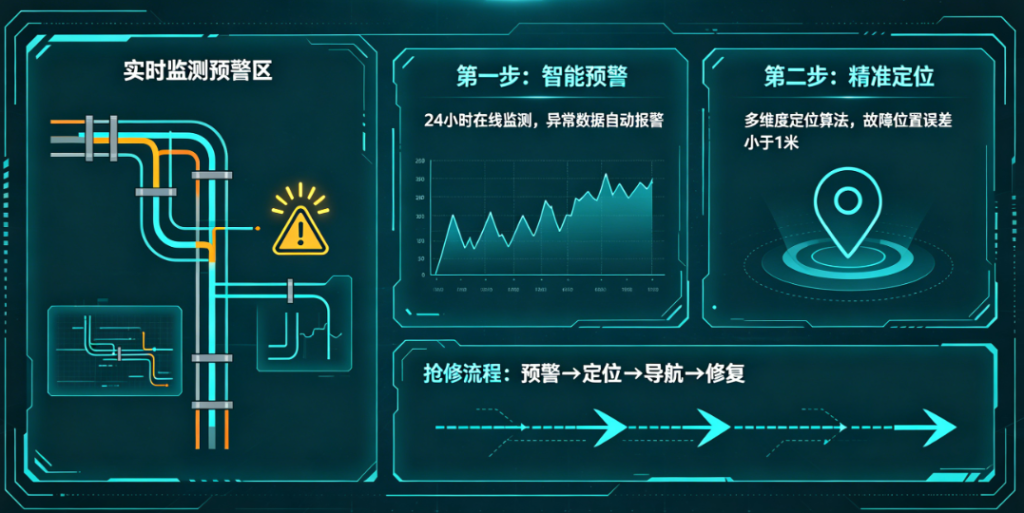 而电力行业电缆故障预警与精确定位系统,就像给电缆抢修装了“导航”,让抢修变得简单、精准。系统的预警功能,就像导航的“提前提醒”,能在故障发生前,提前发现隐患,提醒运维人员及时处理,避免故障发生;即使故障发生,系统也会立即发出报警,告知运维人员故障类型和大致范围。而定位功能,就像导航的“精准指引”,能精准锁定故障点位置,告诉运维人员“故障点就在这里”,无需猜测、无需盲目排查。