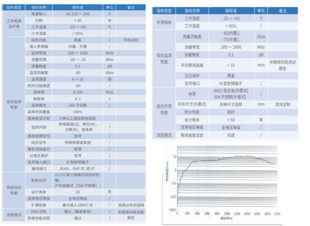 GIL/GIS 局部放电在线监测技术指标: