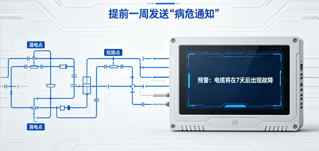 电缆漏电、短路,是电力运维中最常见也最危险的故障——漏电可能引发触电事故,威胁人员安全;短路可能导致电缆烧断、大面积停电,造成严重的经济损失。以前,运维人员只能被动应对这些故障,往往等到故障爆发后才去抢修,十分被动。而电缆故障预警与精确定位系统,能提前一周给电缆发“病危通知”,提前预警漏电、短路等故障风险,让运维人员有充足的时间处置,彻底摆脱被动抢修的困境。